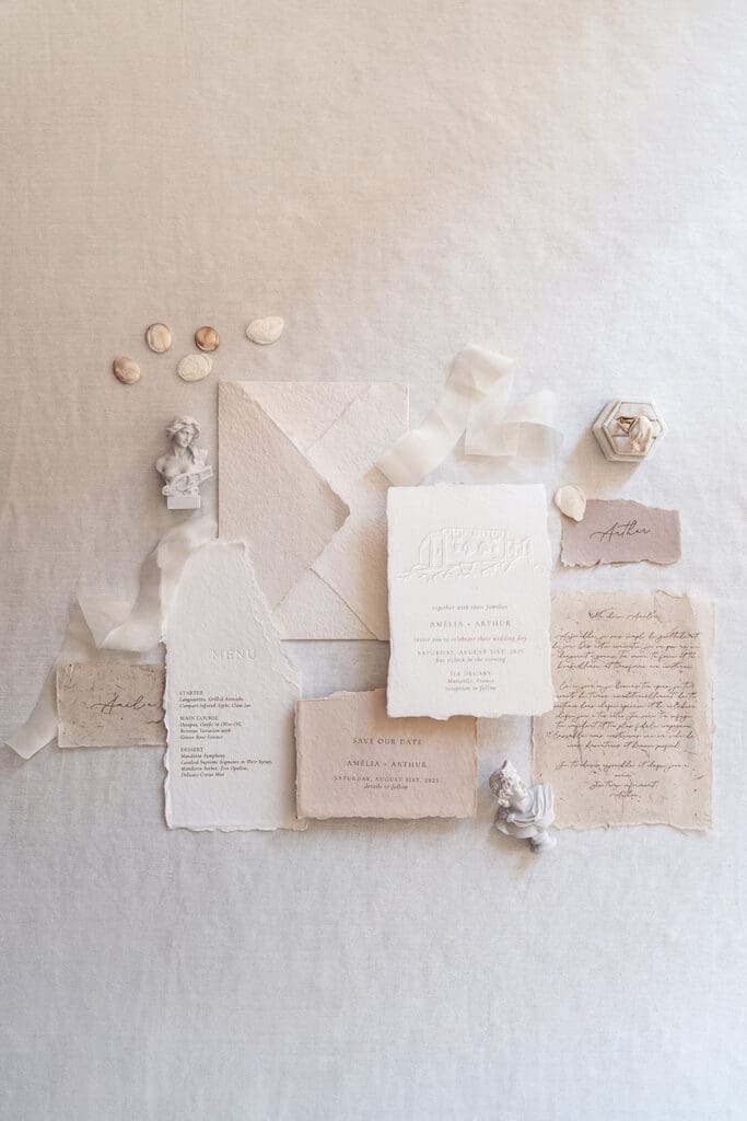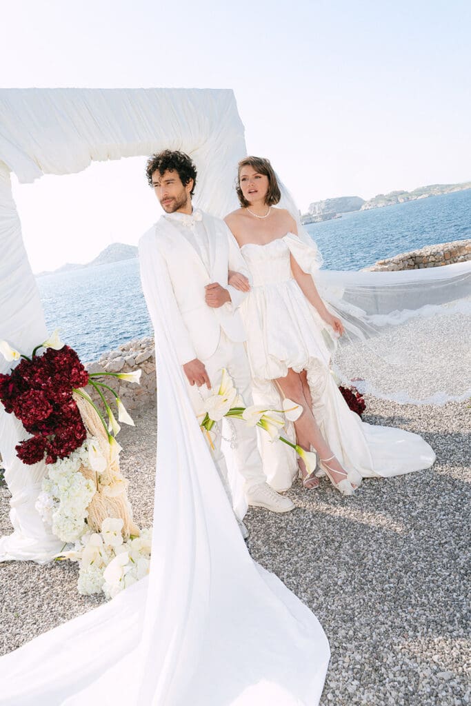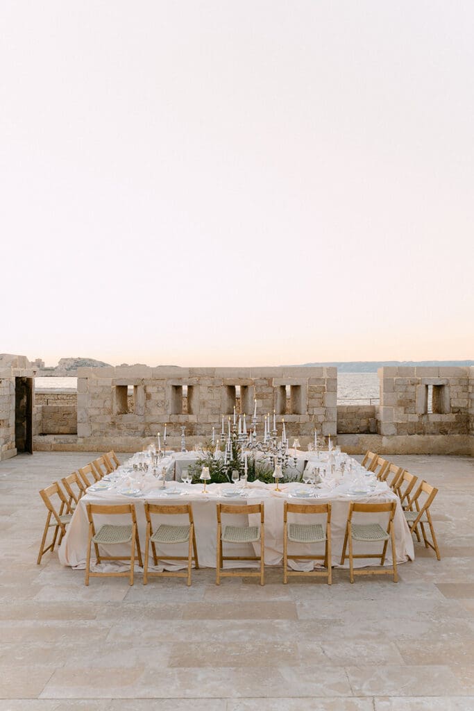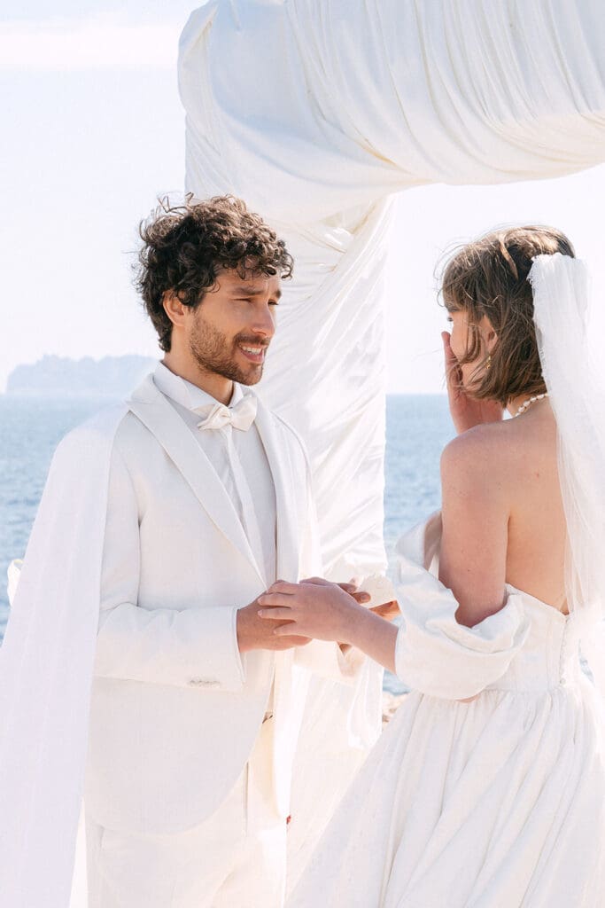 À quelques minutes de Marseille, en plein cœur des calanques, se cache un lieu singulier et préservé : l’Île de Gaby. Accessible uniquement par bateau, cette île confidentielle offre un cadre unique, minéral et sauvage, où la roche blanche se jette dans les eaux turquoise. C’est dans cet écrin naturel, à l’abri du monde, qu’un couple a choisi de célébrer son mariage, dans l’intimité la plus précieuse.